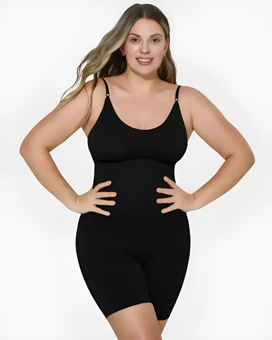 Faja moldeadora con compresión firme que alisa abdomen, glúteos y muslos para una silueta tipo reloj de arena.