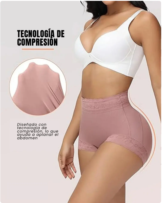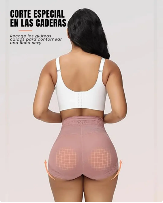 Faja moldeadora con compresión firme que alisa abdomen, glúteos y muslos para una silueta tipo reloj de arena.