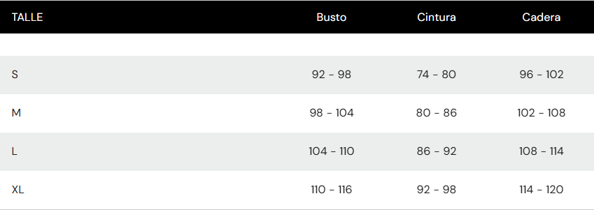 En la página del producto tienes una guía de tallas detallada. Y si tienes dudas, entre 2 talles elegí la mas grande. La tela es super elástica así que no vas a tener problema, sino puedes contactarnos y te ayudamos a elegir la ideal para ti.
