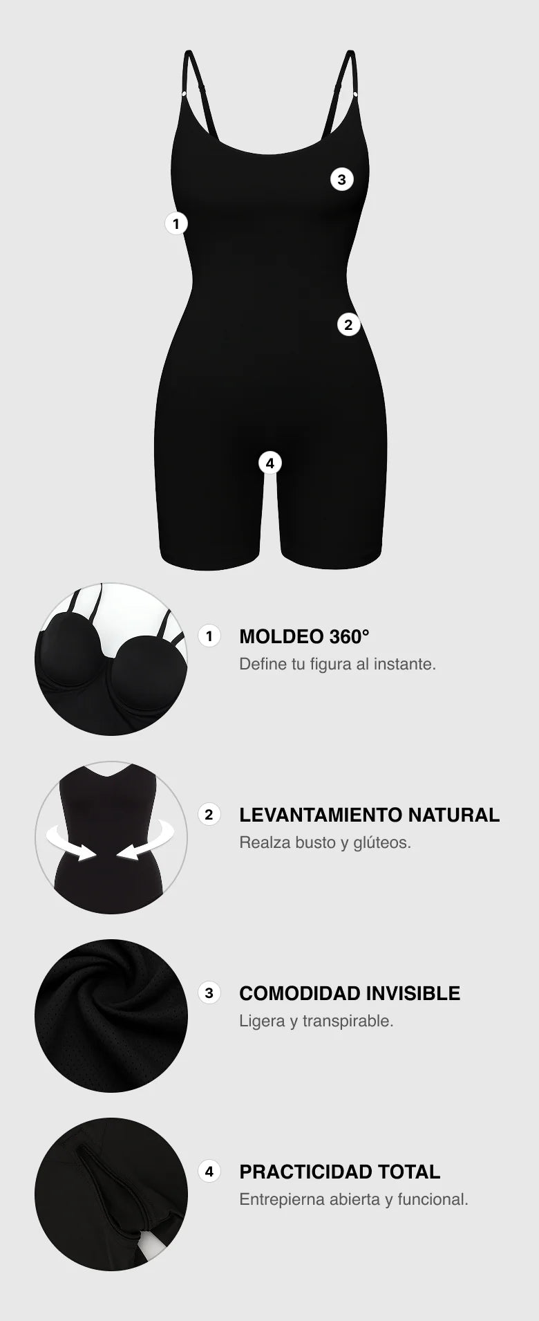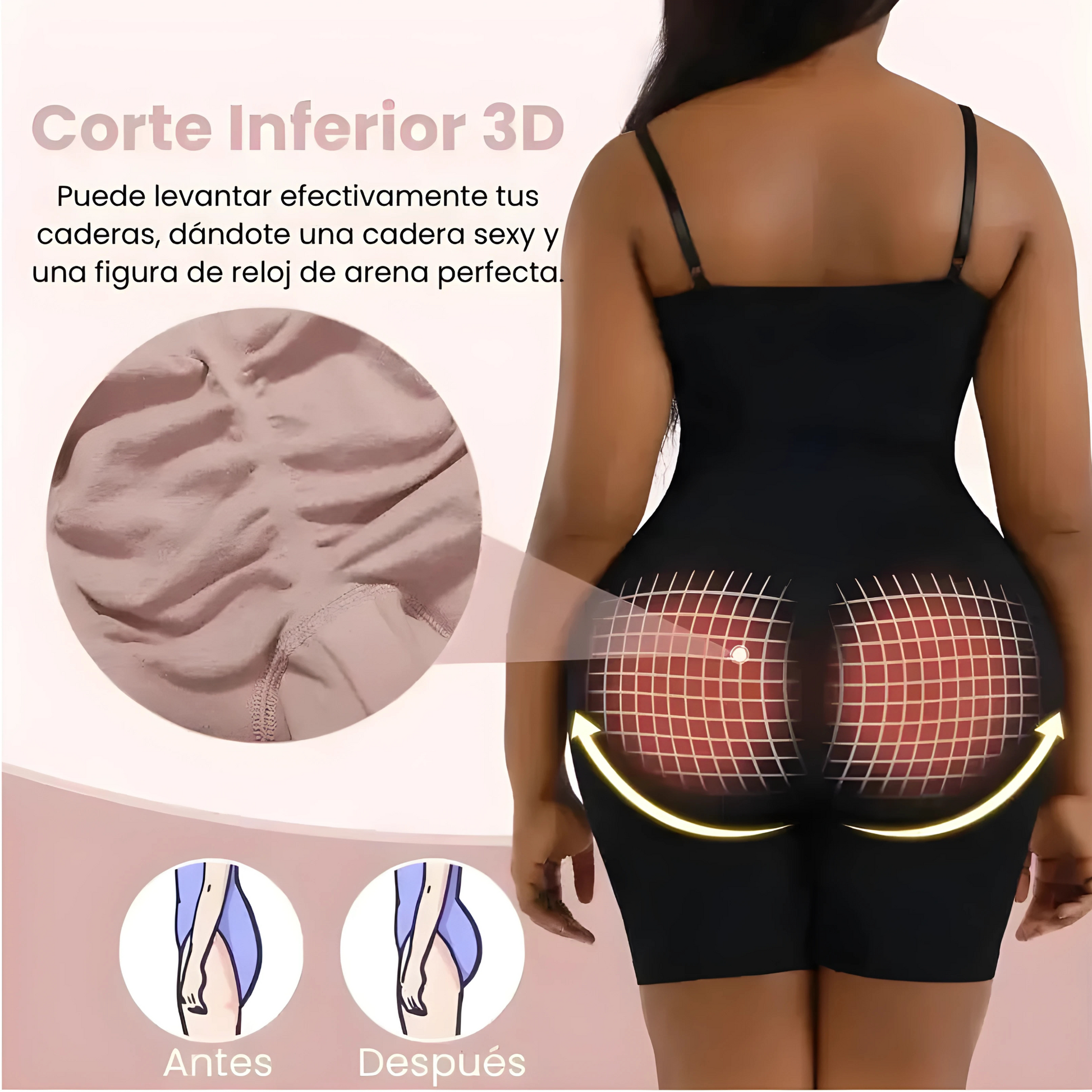 Faja moldeadora con compresión firme que alisa abdomen, glúteos y muslos para una silueta tipo reloj de arena.